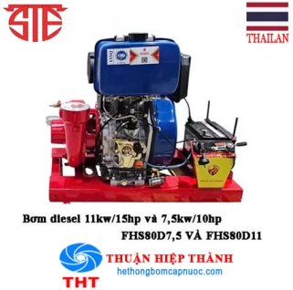 Máy bơm chữa cháy diesel STE FHS80D11 là dòng sản phẩm được ứng dụng nhiều trong các hệ thống PCCC, công trình cấp nước quy mô lớn, công trình xây dựng, hệ thống cấp nước khu vực, hệ thống chung cư, nhà cao tầng, các khu đô thị,… Được hoạt động bởi dầu diesel với công suất 11kw, máy bơm có thể tạo ra cột áp có độ cao 75 - 45m. Lưu lượng 14 - 53m3/h và có đường kính hút xả DN80-DN80. Bơm diesel được sản xuất bởi đầu bơm hãng STE - xuất xứ Thái Lan Quý khách hàng sẽ được bảo hành 12 tháng và cung cấp đầy đủ CO, CQ chính hãng khi mua hàng tại Công ty TNHH Thuận Hiệp Thành.