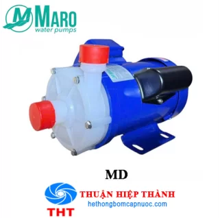 Máy bơm hóa chất dạng dẫn động từ Maro MD-100RM-PVDF ( vật liệu PVDF ) là dạng bơm hóa chất chuyên sử dụng để trung chuyển các hóa chất như: axit, bazơ với nồng độ thích hợp, trung chuyển các môi chất tẩy rữa,môi chất bán dẫn,xi mạ lỏng.... Được sử dụng nguồn điện 220V với công suất 250W, tiết kiệm điện. Cột áp của dòng bơm tự động này có độ cao 8.6m. Lưu lượng nước tối đa 120 lít/phút. Máy bơm hóa chất được sản xuất bởi hãng bơm Maro có xuất xứ Trung Quốc. Quý khách hàng sẽ được bảo hành 12 tháng và cung cấp đầy đủ Co,CQ khi mua hàng tại Công ty TNHH Thuận Hiệp Thành.