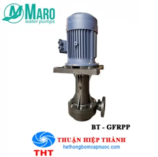 Máy bơm hóa chất trục đứng đặt ngoài bồn Maro BT-50SK-3-GFRPP ( vật liệu GFRPP ) là dạng bơm hóa chất chuyên sử dụng để trung chuyển các hóa chất như: axit, bazơ với nồng độ thích hợp, trung chuyển các môi chất tẩy rữa,môi chất bán dẫn,xi mạ lỏng.... Được sử dụng nguồn điện 380V với công suất 2.2kW, tiết kiệm điện. Cột áp của dòng bơm tự động này có độ cao 23m. Lưu lượng nước tối đa 430 lít/phút. Máy bơm hóa chất được sản xuất bởi hãng bơm Maro có xuất xứ Trung Quốc. Quý khách hàng sẽ được bảo hành 12 tháng và cung cấp đầy đủ Co,CQ khi mua hàng tại Công ty TNHH Thuận Hiệp Thành.